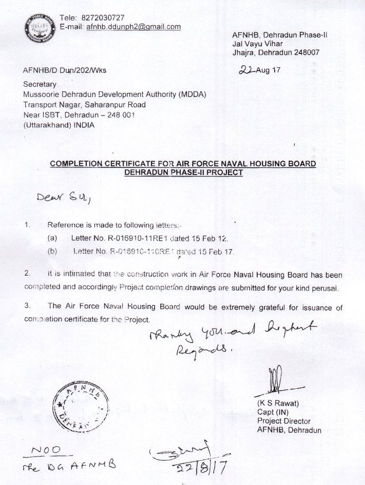 Deed of Registration for Superstructure of Residential Units and Sub-lease Deed for Land at Jalvayu Towers, Dehradun (16 Mar 18).. [View Details...]