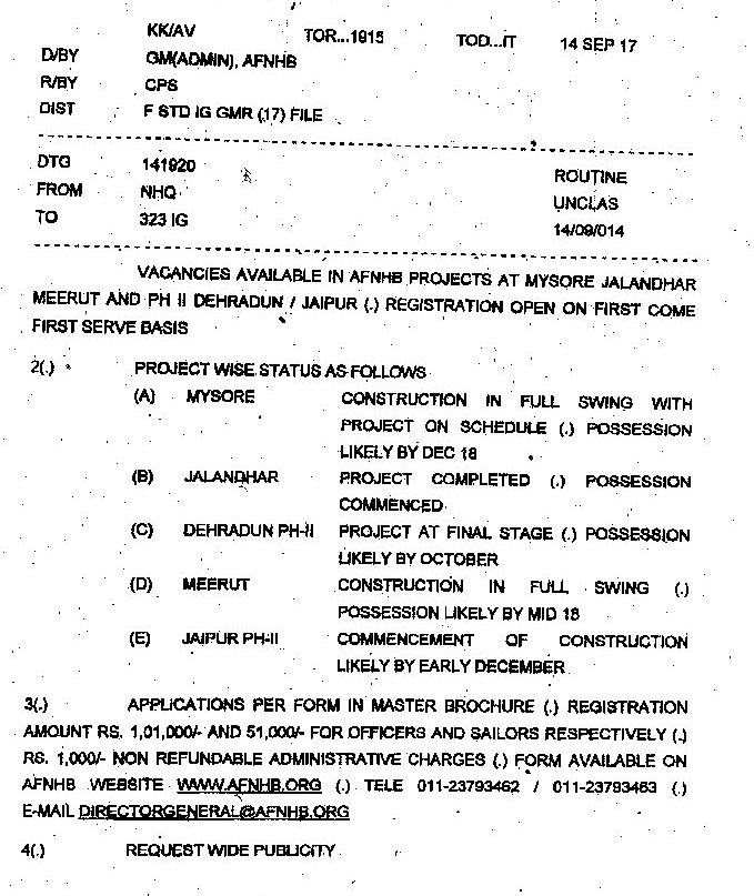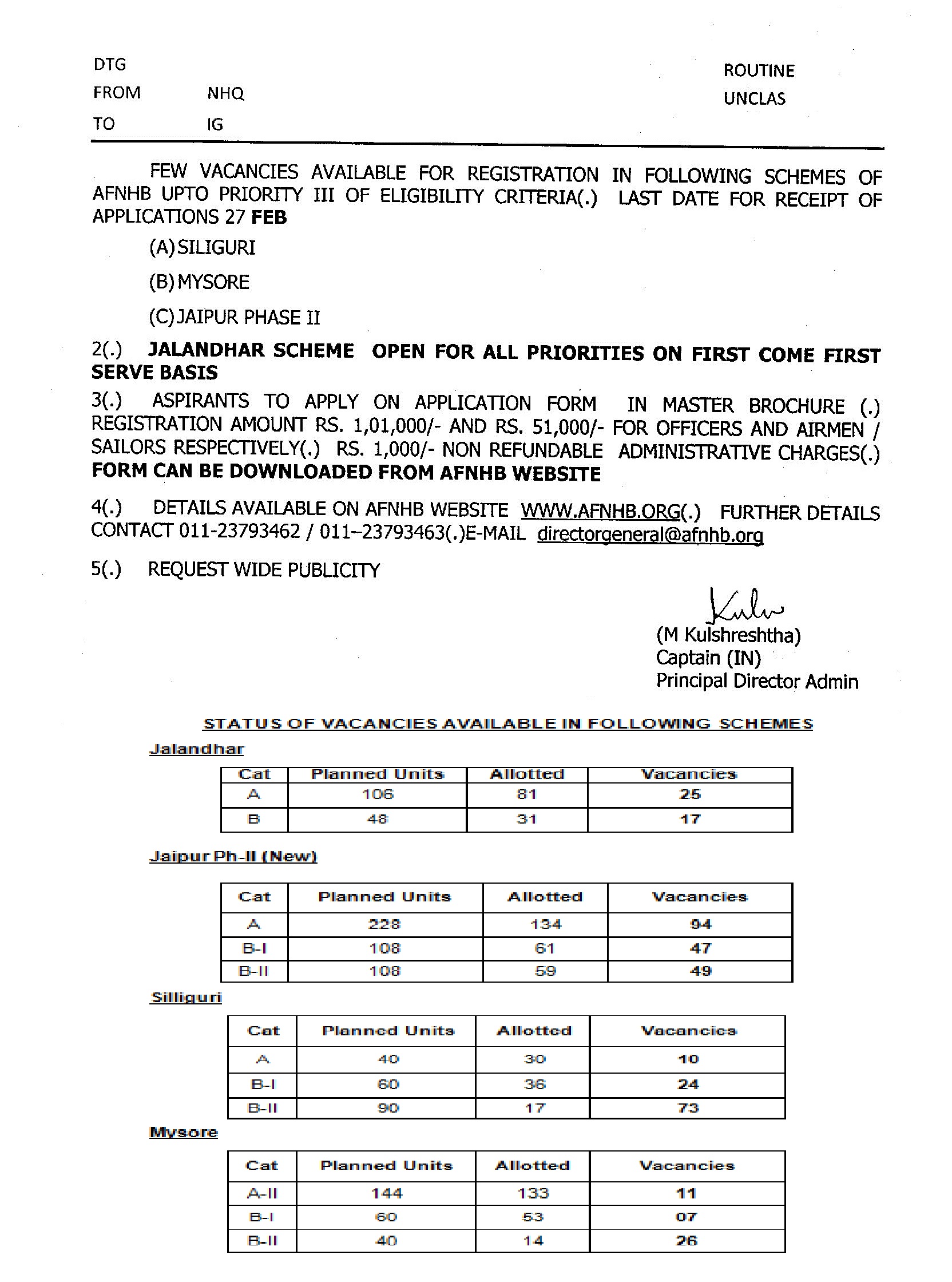 Last Opportunity for Air Force and Naval Personnel to apply for AFNHB Jalandhar Scheme as eligibility diluted to include Serving Army And Coastguard Personnel. Regn. open till 01 May 13. [Read more...]