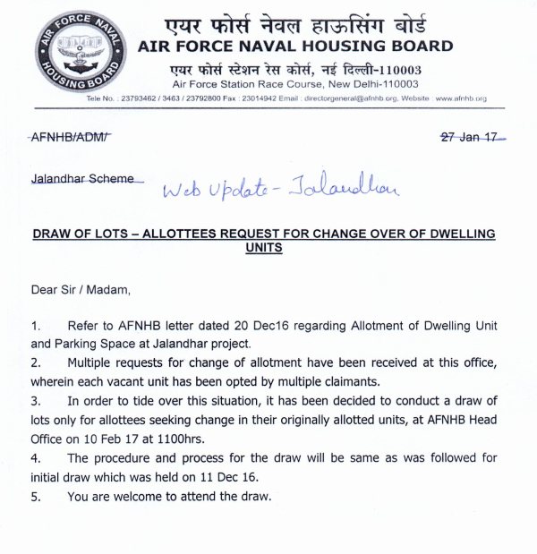 Offer to existing Allottees for two adjind Attention : JALANDHAR PROJECT allottees. [Read more...]