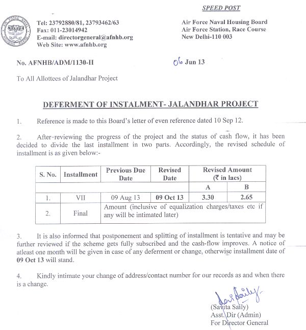 Defferment of VII Instalment from 9 Aug 13 to 09 Oct 13 : 6 Jun 13. [Read more...]
