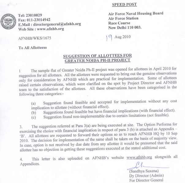 Greater Noida Ph-II Project : Suggestion of Allottees