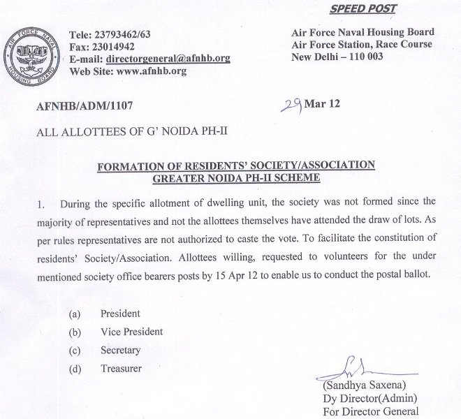 Greater Noida : Formation of Residents' Society/Association : 29 Mar 12.