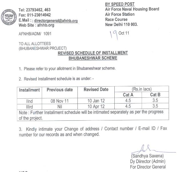 Bhubaneshwar : Revised schedule of Installment