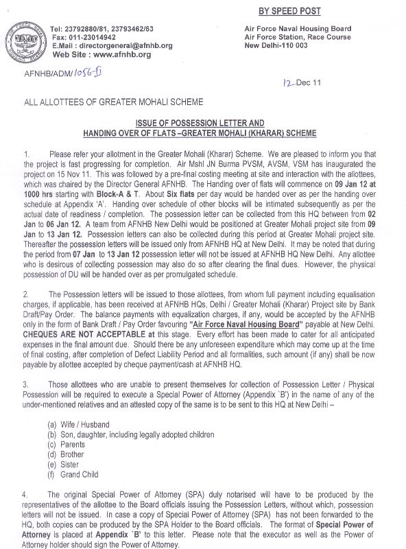 Greater Mohali:Issue of Possession Letter |