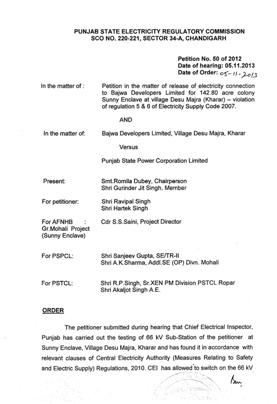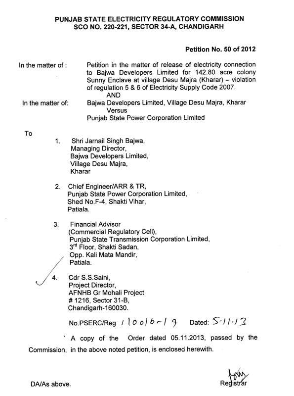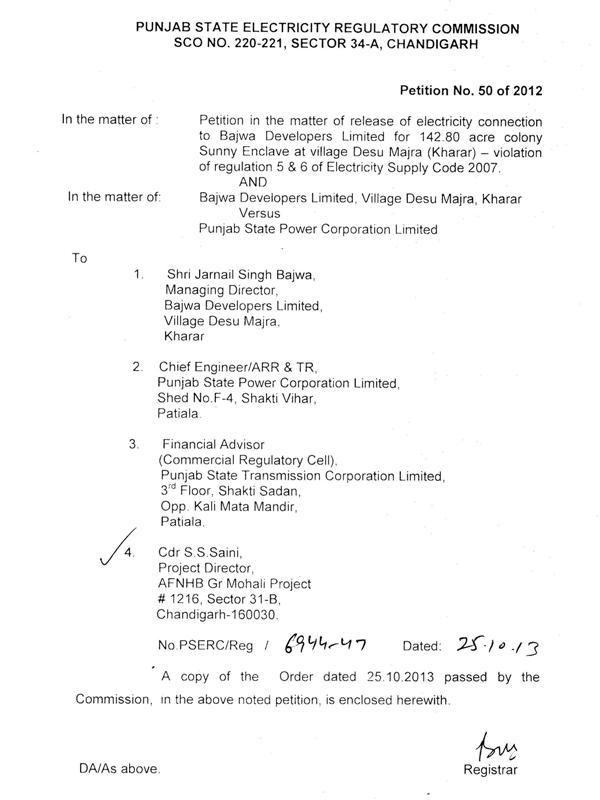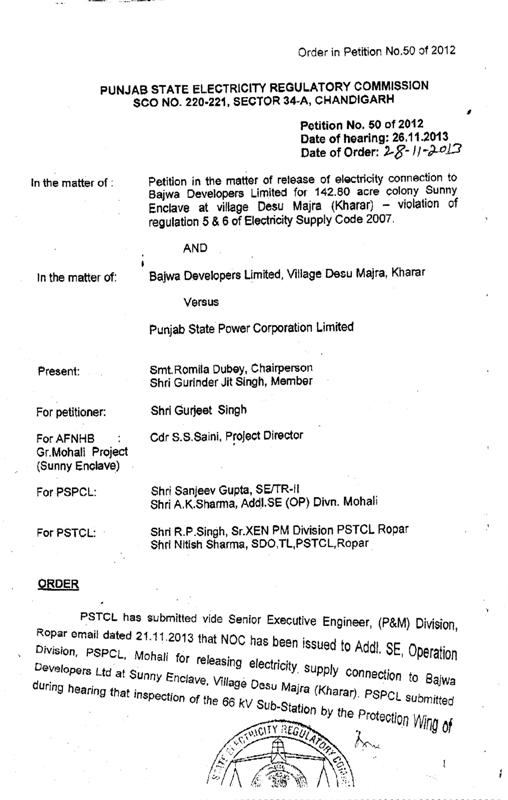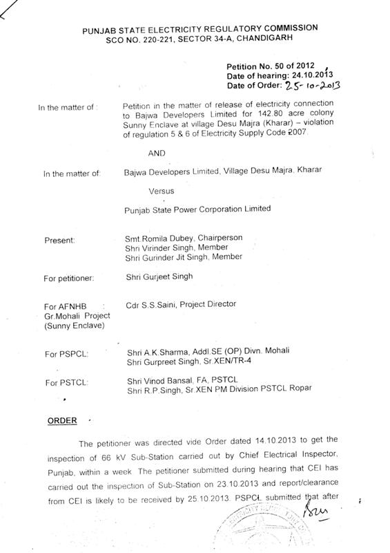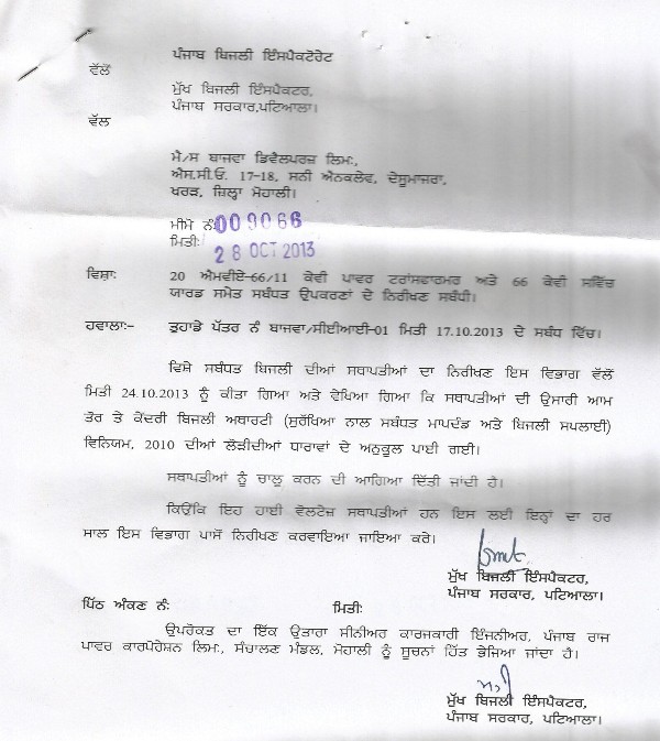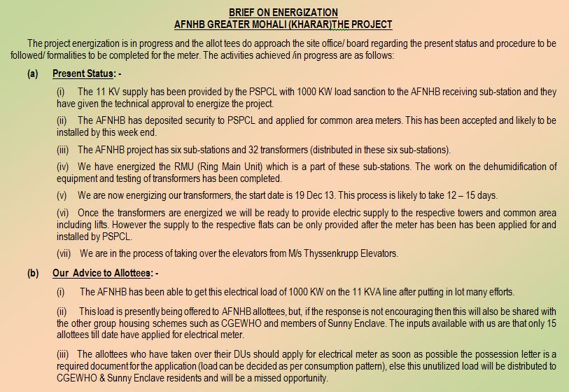 Greater Mohali (Kharar) Project : Update on Energisation |