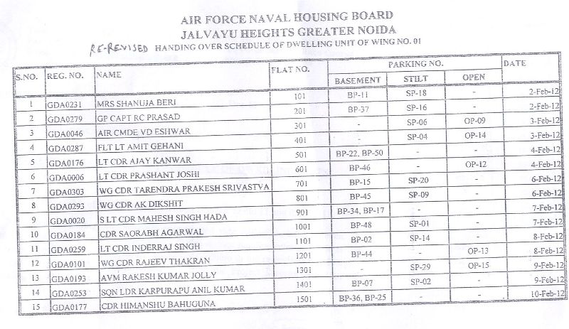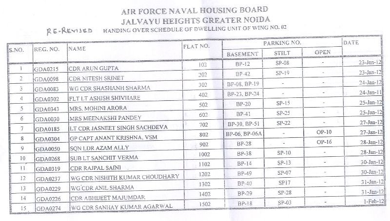 Greater Noida Ph-II Re-revised Handing Over schedule of Dwelling Units.