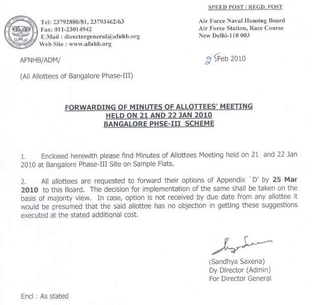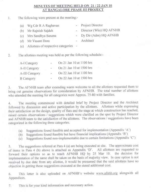 Forwarding of Minutes of Allottees meeting held on 21 and 22 Jan 10 : Bangalore Ph-III Scheme